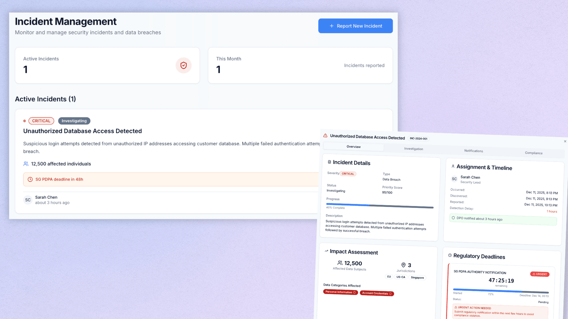 Every incident, one workflow — aligned with PDPC guidelines.