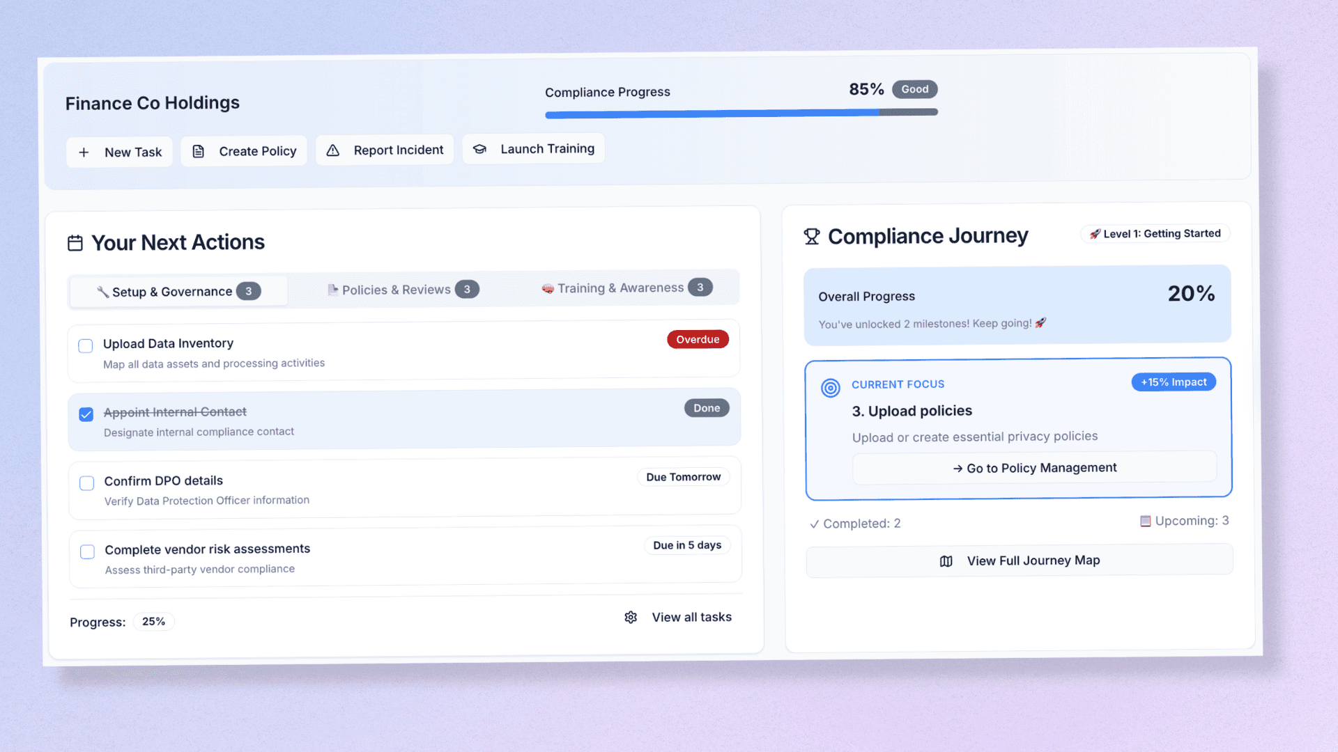 See how every action affects overall compliance