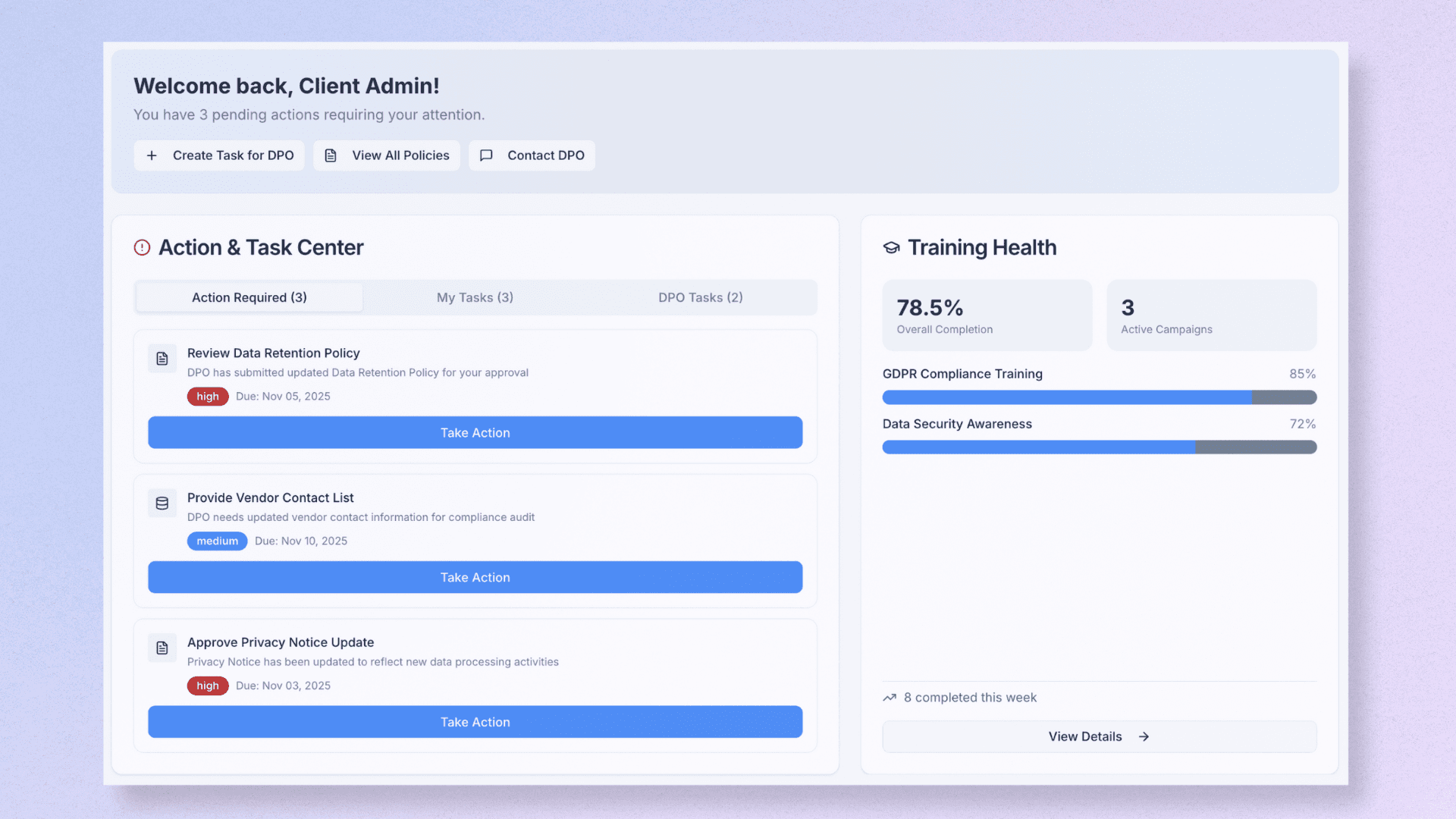 Guided actions fed directly into the DPO’s evidence trail