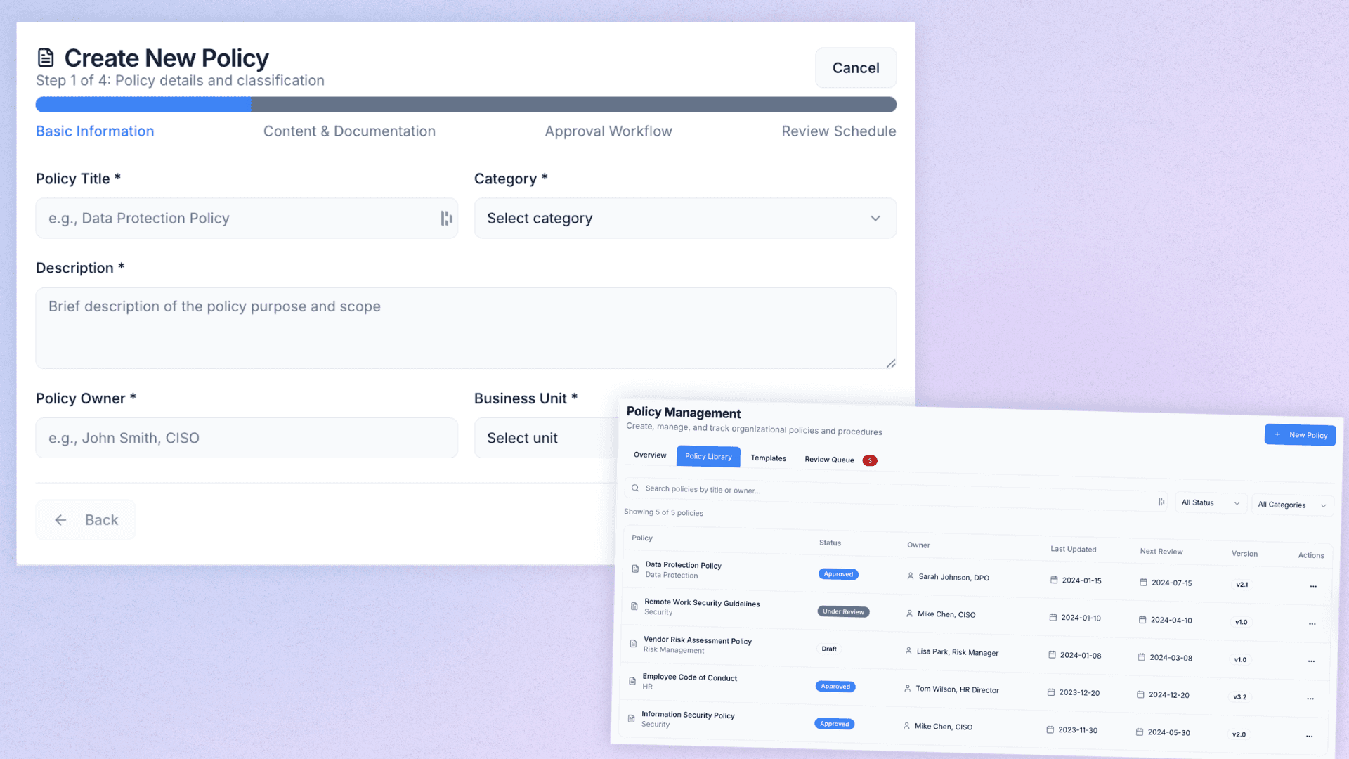 Create, approve, publish, and track every policy — from one secure workspace.
